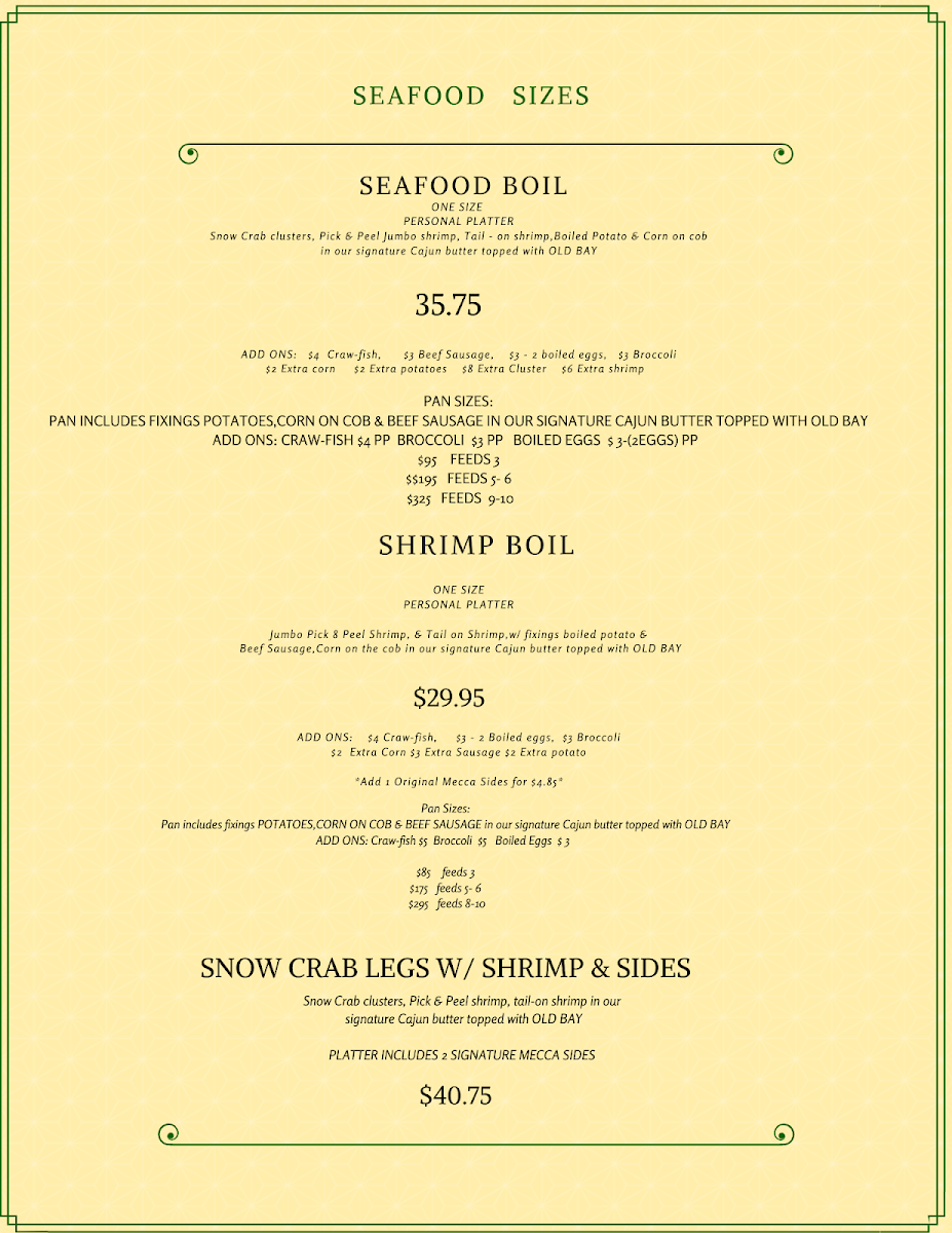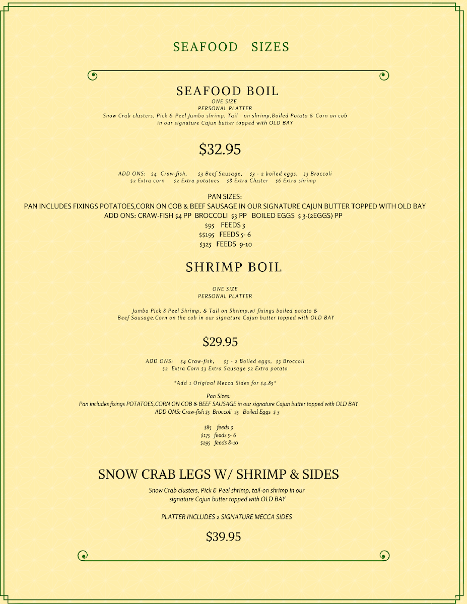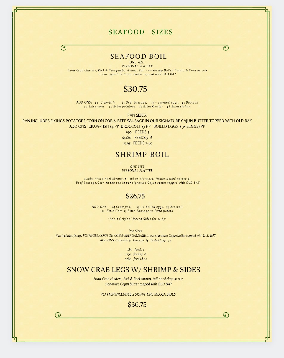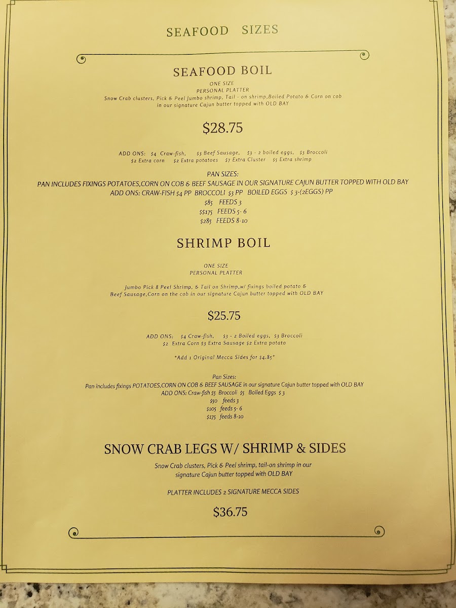 “ WOW! This little gem was PHENOMENAL! The BEST seafood boil I have ever had, The BEST catfish, the BEST oxtails, the BEST fried chicken! To top it off the customer service was excellent. It was me and my family’s first time and they made us feel like family! We will definitely be repeat customers. Thank you Mecca! You guys are wonderful! ”